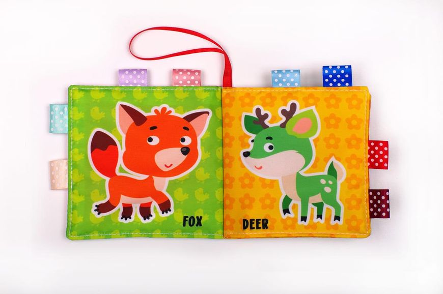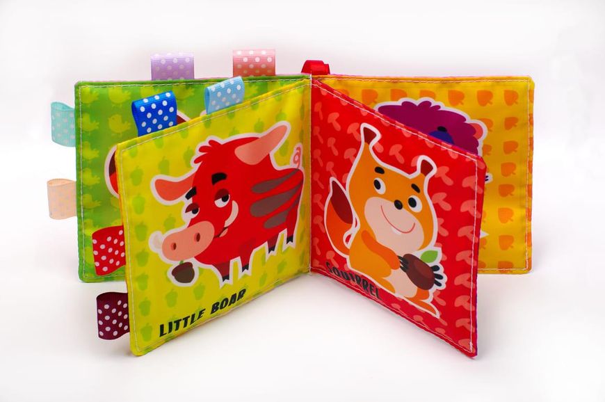 “Ця книжка – унікальна іграшка для кожного малюка! Книжка-шурхотілка з м’якими елементами і вшитим брязкальцем сподобається кожній дитині. Виготовлена з якісних текстилю та полімерних матеріалів, безпечних для дітей. Книга чудово стимулюють розвиток тактильних навичок, дрібної моторики, слухового та зорового сприйнетя. Книга порадує дитину вдома, під час прогулянки або в дорозі. Її можна прикріпити на коляску чи ліжечко Звуковий ефект, сторінки – шуршать, брязкають.”