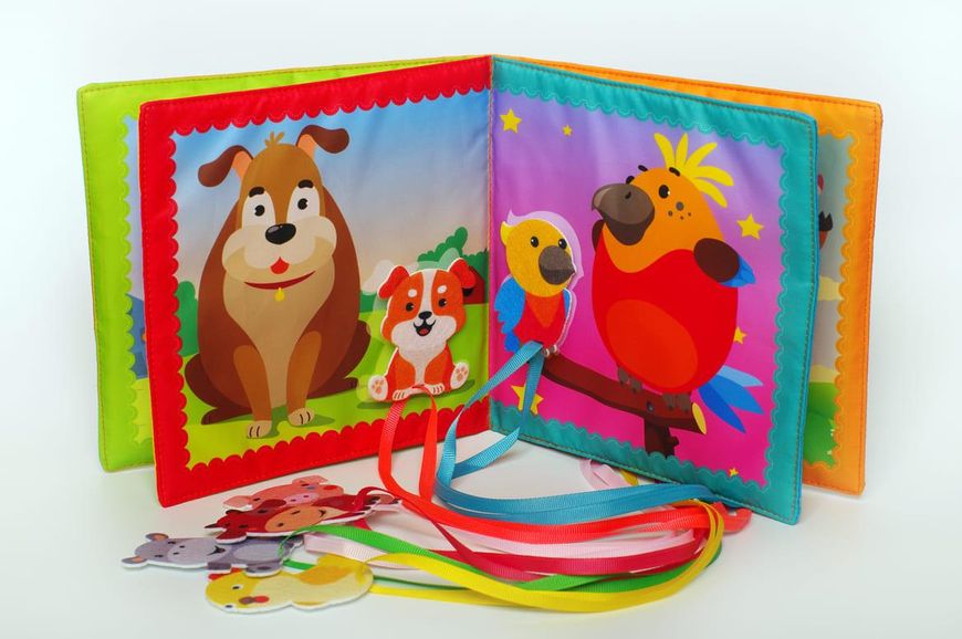 М’які текстильні (фетрові) книжки завоювали велику любов серед батьків і дітей всього світу .Вони містять стільки різних і цікавих сторінок, з якими можна грати, що дітей навіть не чути. Не дарма їх ще називають “тихими книгами”. Граючись з м’якою книжкою, дитина засвоює кольори , розвиває дрібну моторику, зорове та слухове сприйняття. Великі малюнки головних персонажів, м*які, лагідні сторінки на дотик з протиалергенного, «дихаючого» матеріалу, сторінка – шурхотілка, яскраві фігурки з фетру на ліпучках, кольорові стрічки – це все Ви знайдете придбавши цю книгу. Дитині пропонується підібрати правильно один із смарт елементів та прикрипіти його на сторінці за допомогою ліпучки, або зворотній варіант, знайти невірно прикріплені фігурки на сторінках та розмістити їх правильно. Формат книги: 200x200x10 Особливості: Звуковий ефект, смарт елементи Прання: ручне та машинне.