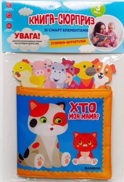 М`яка книга-сюрприз зі смарт-елементами “Хто моя мама?” Сторінка-шурхотілка – КНИЖКОВИЙ ХМАРОЧОС (122292)