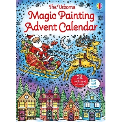 Цей розкішний різдвяний календар містить святково ілюстровану книгу « Magic Painting » за кожним віконцем, а за першим віконцем ви також знайдете високоякісний пензлик з дерев’яною ручкою. Просто проведіть пензликом по чорно-білому малюнку в книжці, і на ньому чарівним чином з’являться яскраві відтінки!