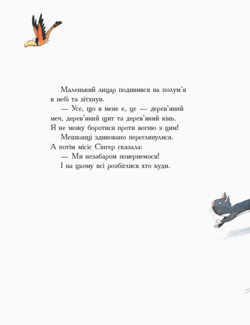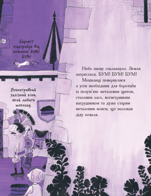 та зовсім не вогнетривких обладунків. Проте у маленького лицаря було головне — хоробре серце. А тому селяни швидко відшукали необхідні речі й відрядили героя на битву із чудовиськом.