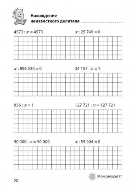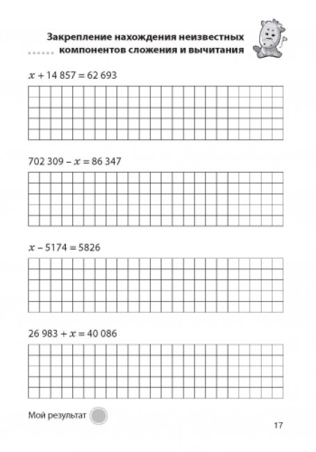 Пособие (авторы Лакисова В.М., Шеремета В.В.) содержит задания на решение уравнений в пределах 1 000 000, что является обязательной составляющей изучения математики. Оно предназначено для отрабатывания материала, изученного на уроках. К тетради прилагаются наклейки, с помощью которых учащийся сам сможет условно оценить свои результаты, наклеив соответствующую из них.