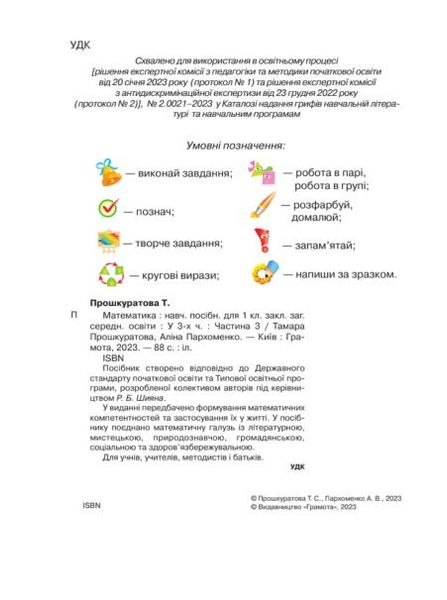 Математика, 1 кл., Навчальний посібник Ч.3 – Прошкуратова Т. – ГРАМОТА (124298)