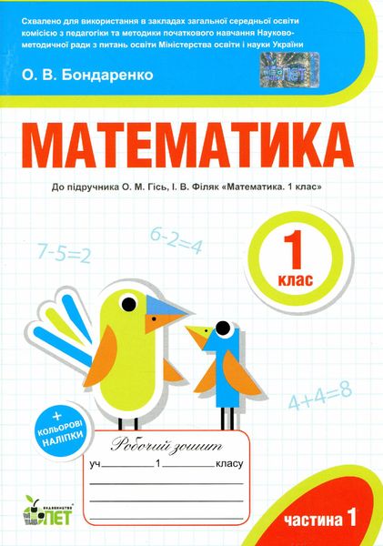 Математика 1 клас 1 частина Робочий зошит до підручника О.М. Гісь, І.В. Філяк + наліпки НУШ Бондаренко О. ПЕТ. Схвалено для використання у загальноосвітніх навчальних закладах Математика 1 клас 1 частина Робочий зошит до підручника Гісь О. НУШ Бондаренко О. ПЕТ