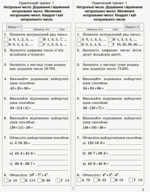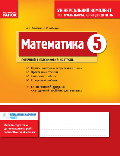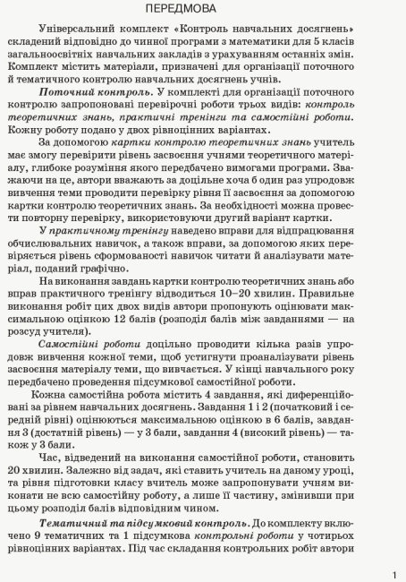 Посібник відповідає вимогам чинної навчальної програми з математики для 5 класу і призначений для організації поточного, тематичного і підсумкового контролю навчальних досягнень учнів.