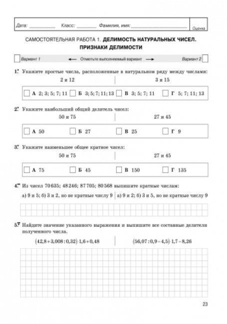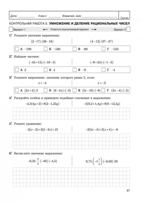 Посібник відповідає вимогам чинної програми з математики для 6 класу з урахуванням останніх змін і призначений для організації поточного, тематичного і підсумкового контролю навчальних досягнень учнів з математики.