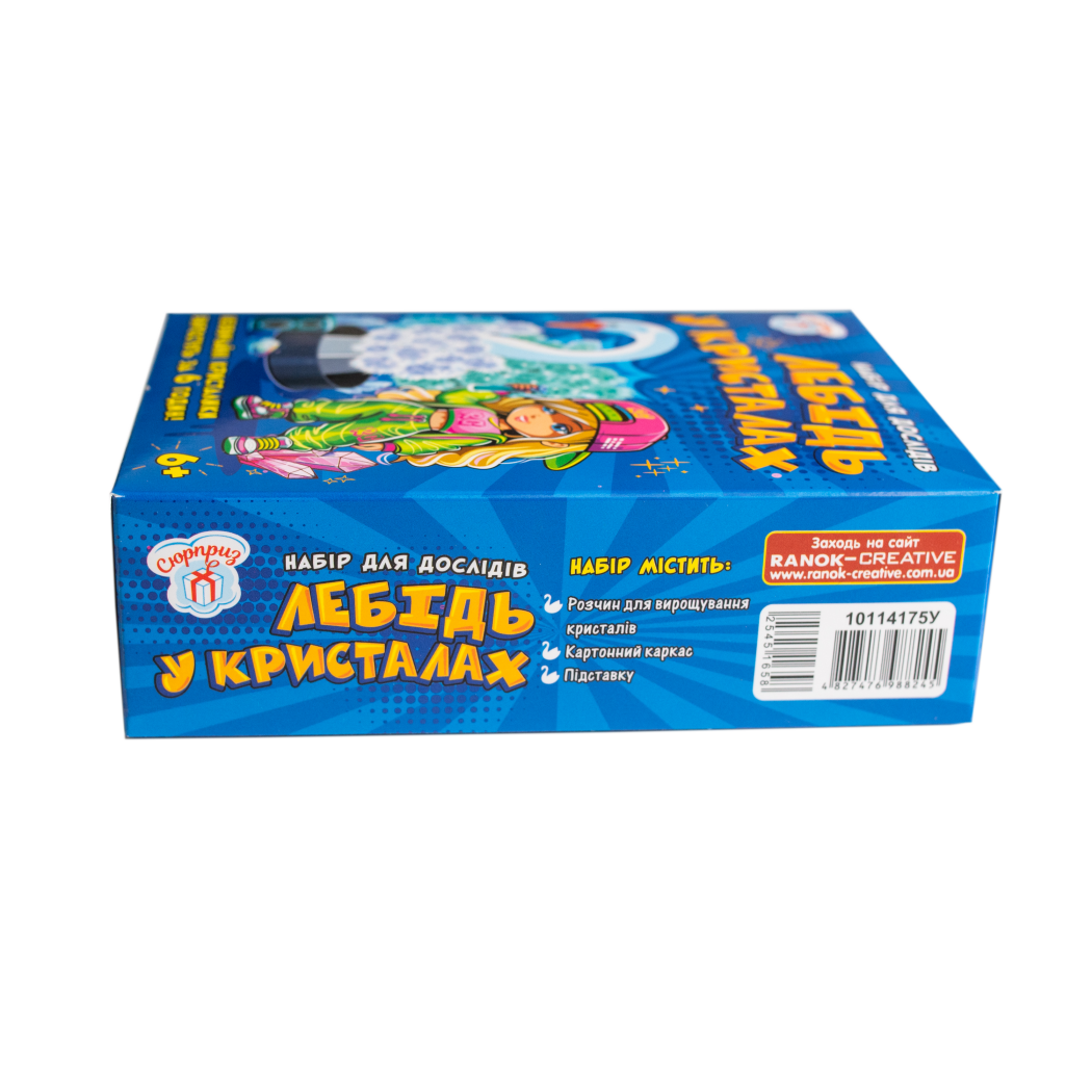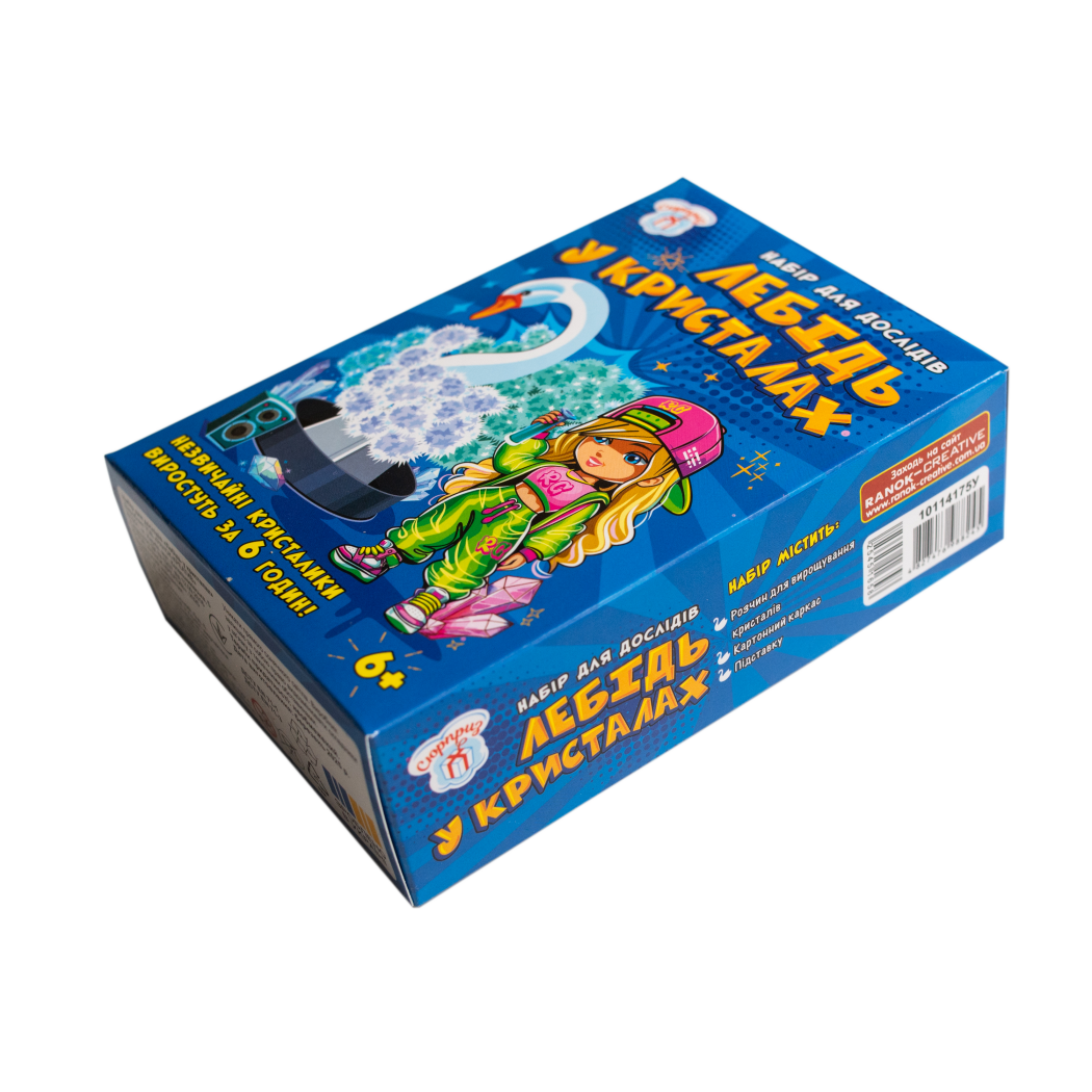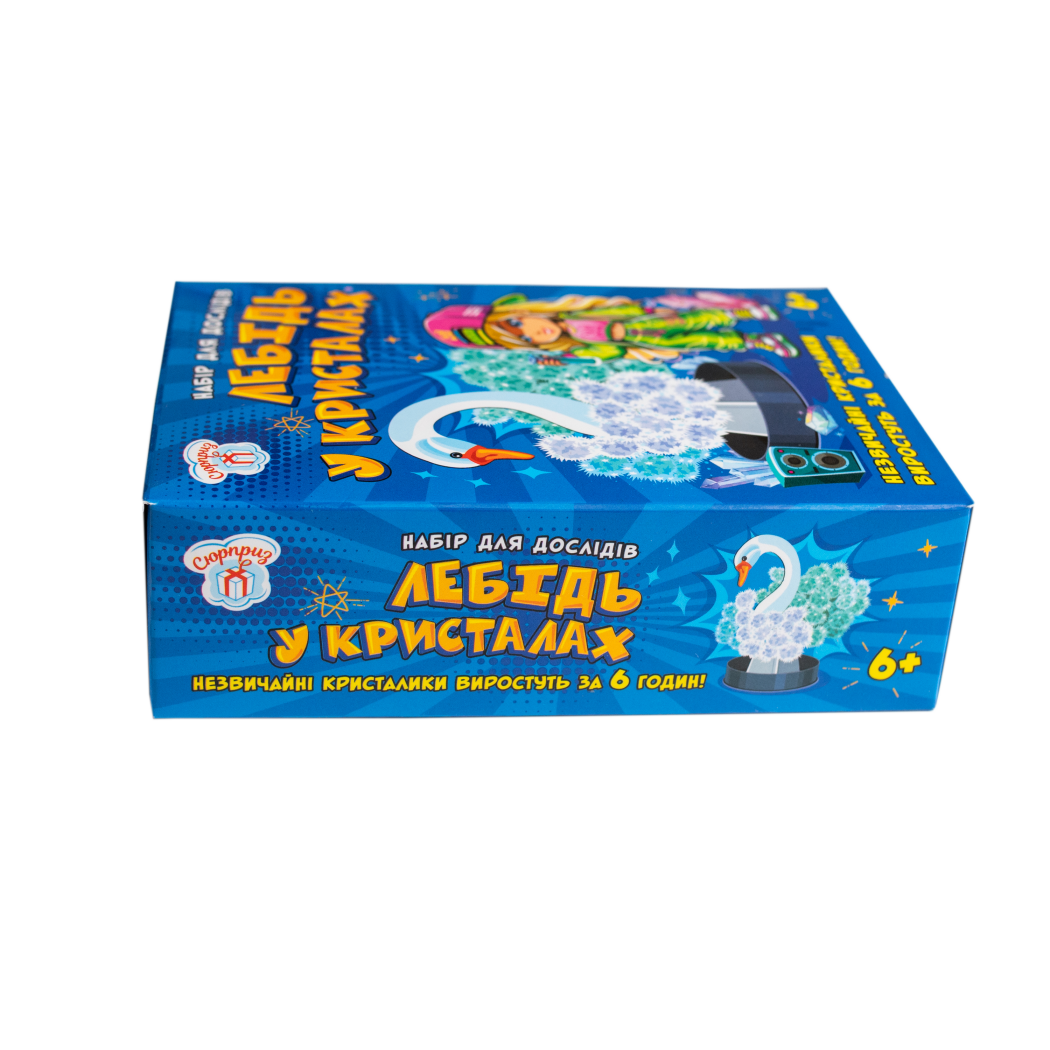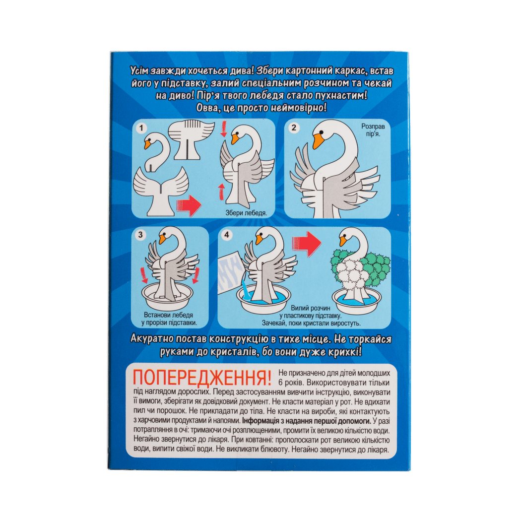 За 6 годин його крила ніжно вкриваються ніжно-блакитними кристалами,а грудинка – білими, що сяють і переливаються на світлі. Все просто: збираєте каркас, ставите в підставку, заливаєте розчин і спостерігаєте, як чарівництво оживає на очах.
