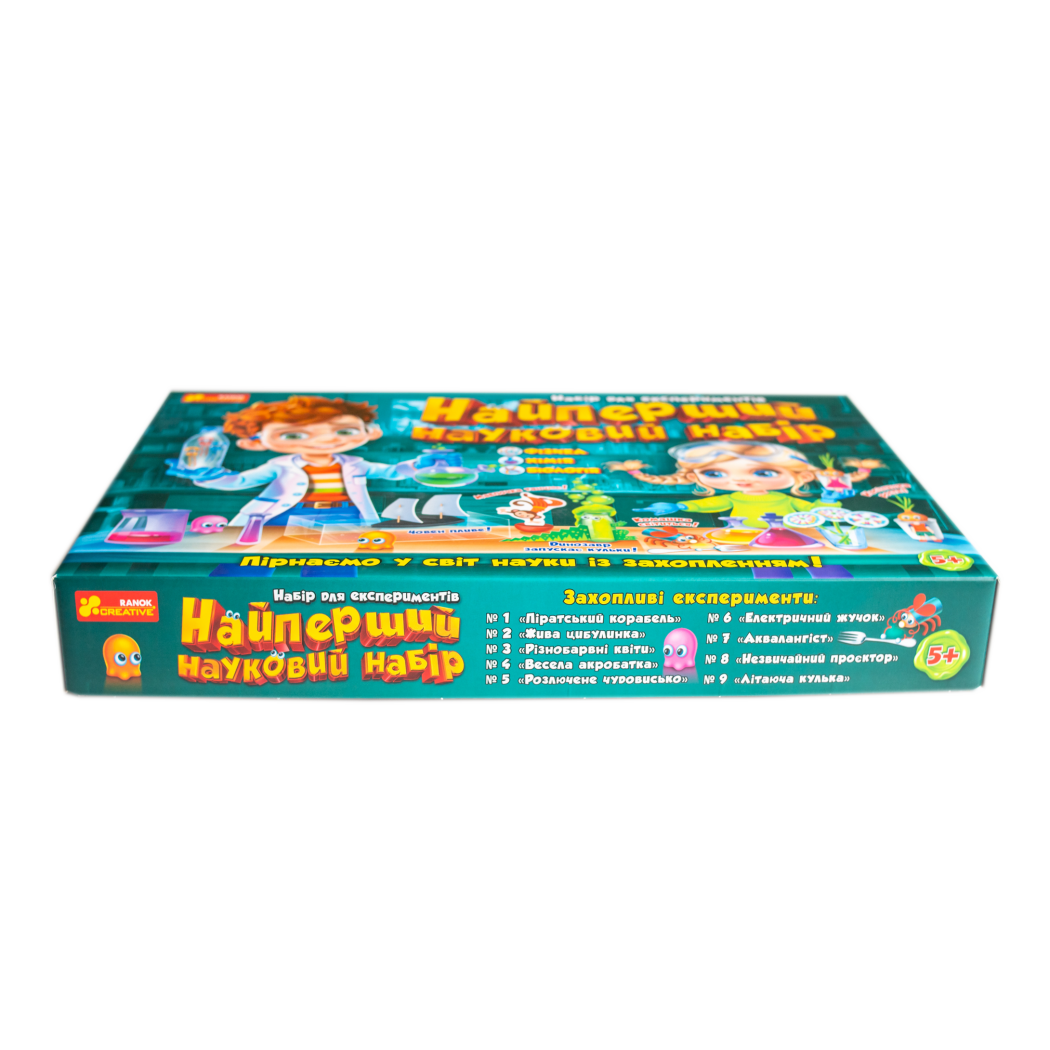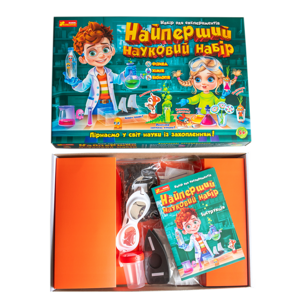 Діти зможуть досліджувати фізику, хімію та біологію в одному наборі: створити піратський корабель і вивчати закони плавучості, спостерігати за ростом живої цибулинки та експериментувати з різнобарвними квітами, проводити хімічні реакції «Розлюченого чудовиська», конструювати електричного жучка, пірнаючого аквалангіста, оживити акробата та літальну кульку, а також виготовити домашній проектор для власних шоу. Кожен дослід розвиває логіку, спостережливість, просторове мислення та креативність.