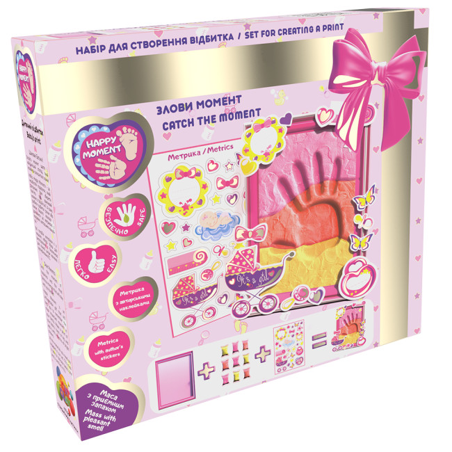 Набір для створення відбитка з легкого пластиліну Moon Light Clay Злови момент для дівчаток допоможе молодим батькам зберегти відбиток маленької ручки або ніжки свого малюка. Творчий процес обов’язково принесе бурю позитивних емоцій, а результат довгі роки радуватиме своїм виглядом.пластилін сертифікований та безпечний для найменших дітей, не викликає алергічних реакцій;