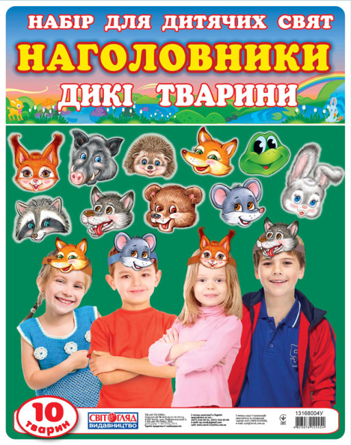 Набори для дитячих свят. Наголовники виконані з ламінованого картону. Є кріплення навколо голови. В наборі 10 наголовників для дітей.
