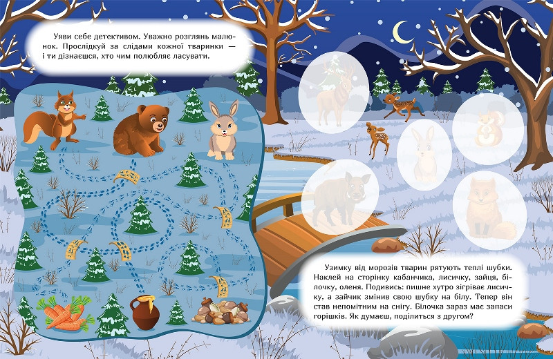 Спостерігати за змінами в природі завжди цікаво та захопливо. У книзі “Зима в лісі” малюк знайде улюблених тварин, дізнається, що вони роблять у цю пору року, пограється з ними за допомогою наліпок. Також у виданні запропоновані завдання на розвиток уваги та логічного мислення. Особливо цікаво дитині буде спостерігати, як змінюється ліс, за тим, як зростають тваринки протягом усіх чотирьох пір року в книжках серії “Наклей і дізнайся”. Бажаємо приємно та з користю провести час!