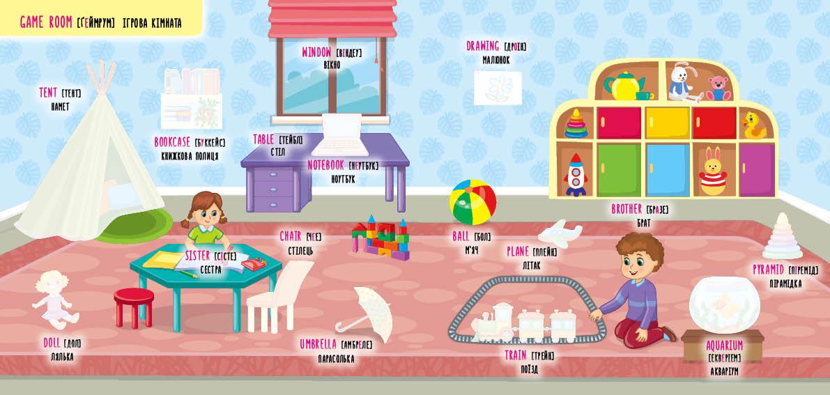 Книжка не лише познайомить малюка з елементами інтер’єру будинку, а й допоможе запам’ятати їхні назви українською та англійською мовами. Видання призначене для спільної роботи дорослих з дітьми дошкільного та молодшого шкільного віку.