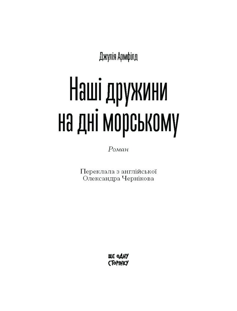 У романі «Наші дружини на дні морському» Джулія Армфілд на тлі оповіді про таємниці морських глибин занурює нас у теми любові, туги і втрати.