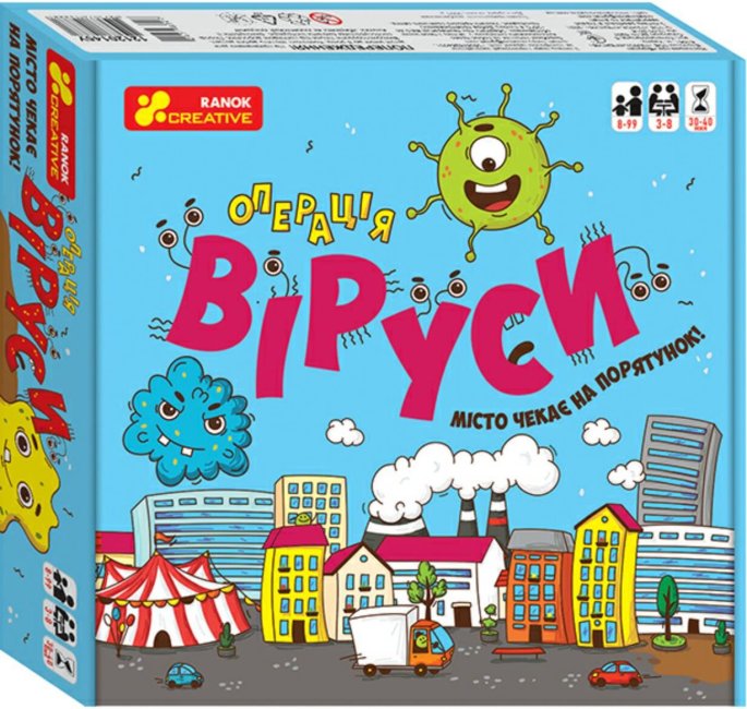 Неймовірно цікава стратегічна гра “Операція “Вірус””! Граємо у сімейному колі, з друзями! Прості правила та незвичайне ігрове поле, з різними секторами міста, 100% сподобається усім!