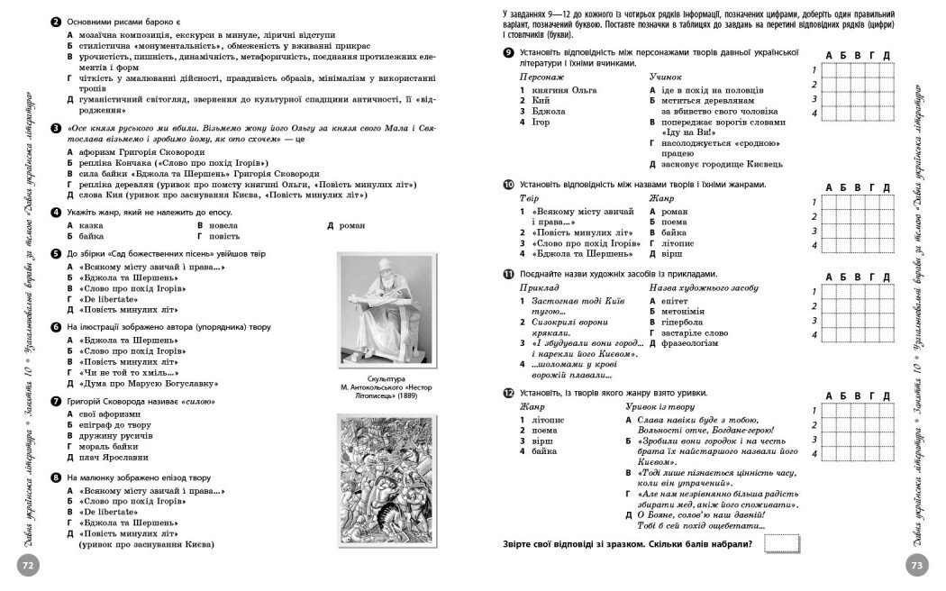 Тести у форматі НМТ з «ключами» для самоперевірки