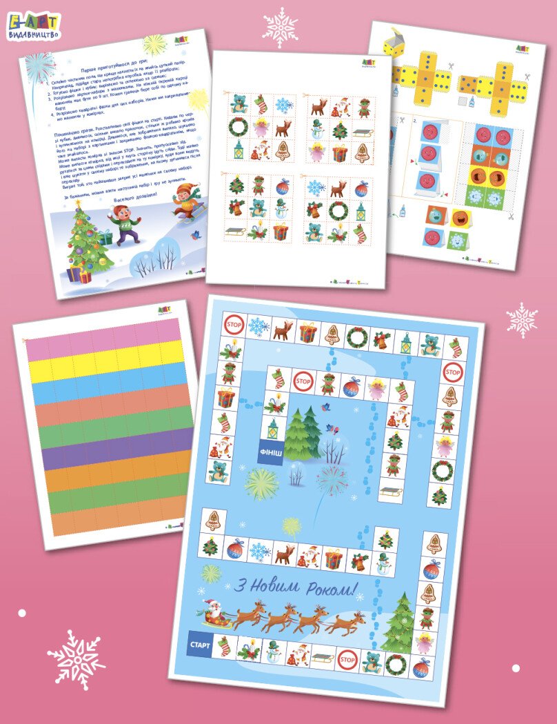 Новорічна гра-ходилка “Бінго” допоможе відволіктися, а заодно потренувати уважність і спритність. Грати можна усією родиною. Яскраві малюнки буде видно навіть при тьмяному освітленні. У комплект гри входять: барвисте ігрове поле, 4 кольорових фішки, 2 гральних кубика, кольорові картки “Бінго”, картки-фішки для закриття комірок.