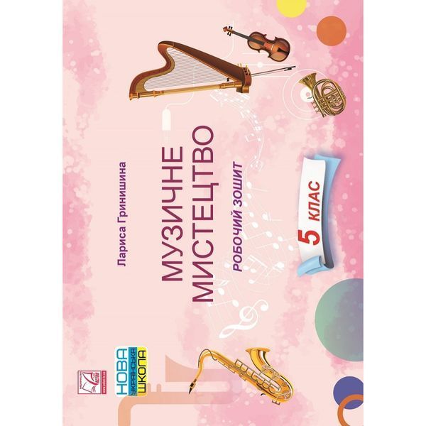 Робочий зошит з музичного мистецтва укладено за навчальною програмою «Мистецтво, 5-6 класи (інтегрований курс) О. М. Івасюк. 0. А. Комаров Г. О. Н. А. Лемешева, О. В. Лобова, Л. й. Назар, Г. Ю. Чужинова, О. А. Шулько), а також може бути використаний як універсальний посібник до пiдручникших авторів. Робочий зошит містить нестандартнi та творчі завдання, він допоможе вчителеві організувати дiяльнiсть учнів на уроках, сприятиме позитивному налаштуванню та ефективному пас оснню програмового матеріалу з музичного мистецтва. Різноманітні форми роботи та види діяльності, цікава додаткова інформація, оптимальна кiлькiсть завдань та площа для практичної роботи забезпечать глибоку з ікавленість учнів та ефективність засвоєння матеріалу. Завдання із зірочкою мають творчий дослідницький характер та розраховані на позаурочну роботу здобувача освіти. Детальнi пояснення послідовності виконання завдань подані для батькiв та вчителів, які супроводжують дитину в процесі творчості. Для учнів 5 класів, учителів, студентів педагогічних закладів вищої освіти, батькiв.