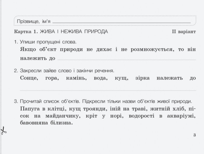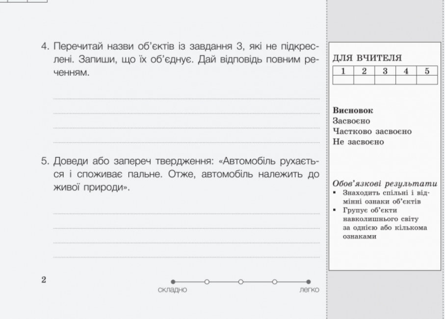 Посібник містить 16 карток у двох варіантах для проведення формувального оцінювання навчальних досягнень з природничої галузі предмета “Я досліджую світ” для учнів 2-го класу.
