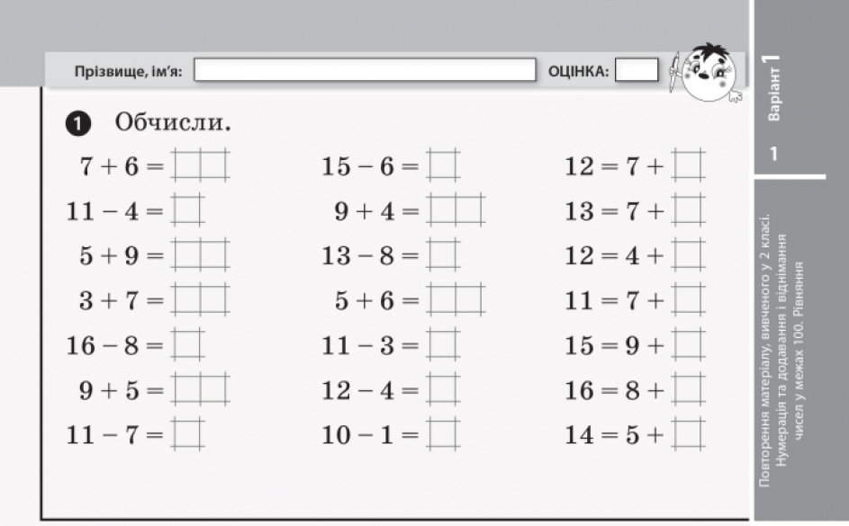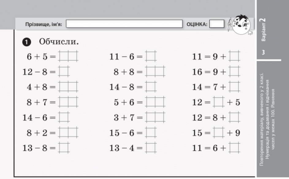 Відривні картки призначені для організації самостійної роботи здобувачів освіти на уроках, мета якої — перевірити засвоєння вивченого матеріалу. Завдання дібрані таким чином, аби на їх виконання учні витрачали не більше 7–10 хвилин. Позначка (*) вказує на завдання підвищеної складності. Третьокласники мають можливість здійснити самооцінку, домалювавши казковому персонажу — Колобку, відповідний вираз «обличчя».
