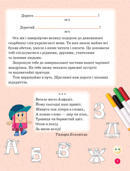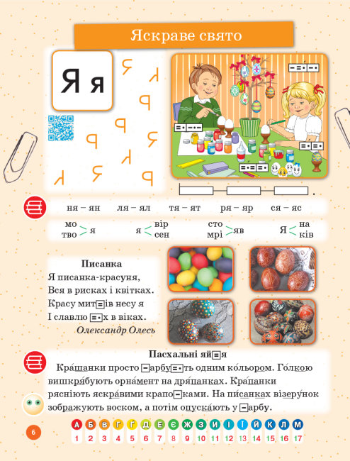 Матеріал четвертої частини навчального зошита призначений для 25–35 тижня навчального року. Інтерактивний посібник побудований з метою реалізації Концепції Нової української школи та відповідає темам модельної освітньої програми для 1-го класу, яка створена на основі Державного стандарту початкової загальної освіти. Розташовані на сторінках зошита QR-коди містять відеозаписи із завданнями до кожної букви, що сприятиме формуванню медіаграмотності першокласників.