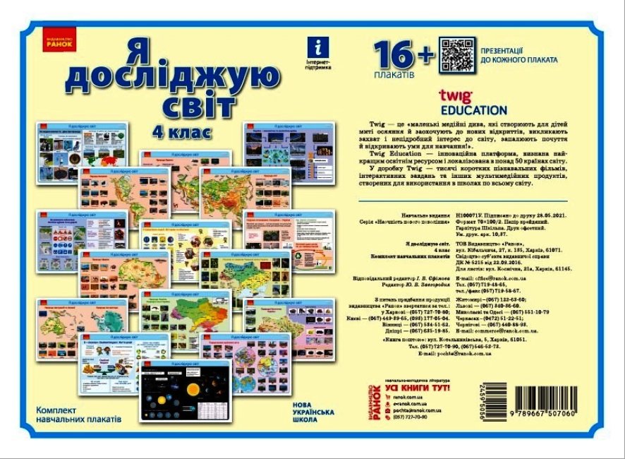Комплект плакатів створений відповідно до Типової освітньої програми, розробленої під керівництвом О.Я. Савченко та Р.Б. Шияна до інтегрованого курсу «Я досліджую світ» 4 клас. Видання містить карти, схеми, діаграми для наочності. Плакати демонструють природу материків та океанів, їх різноманітність. Посібник стане у пригоді як для сучасних здобувачів освіти, так і для вчителів.