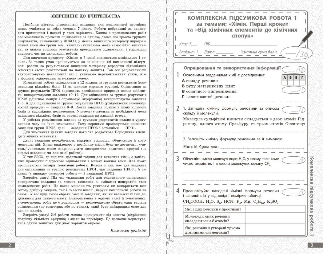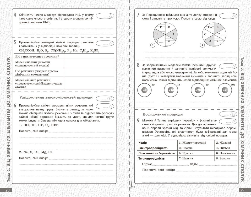 Зошит містить добірку завдань за групами результатів згідно з модельною навчальною програмою. Видання призначене для учнів і учениць 7-го класу ЗЗСО та вчителів / учительок курсу «Хіімія».