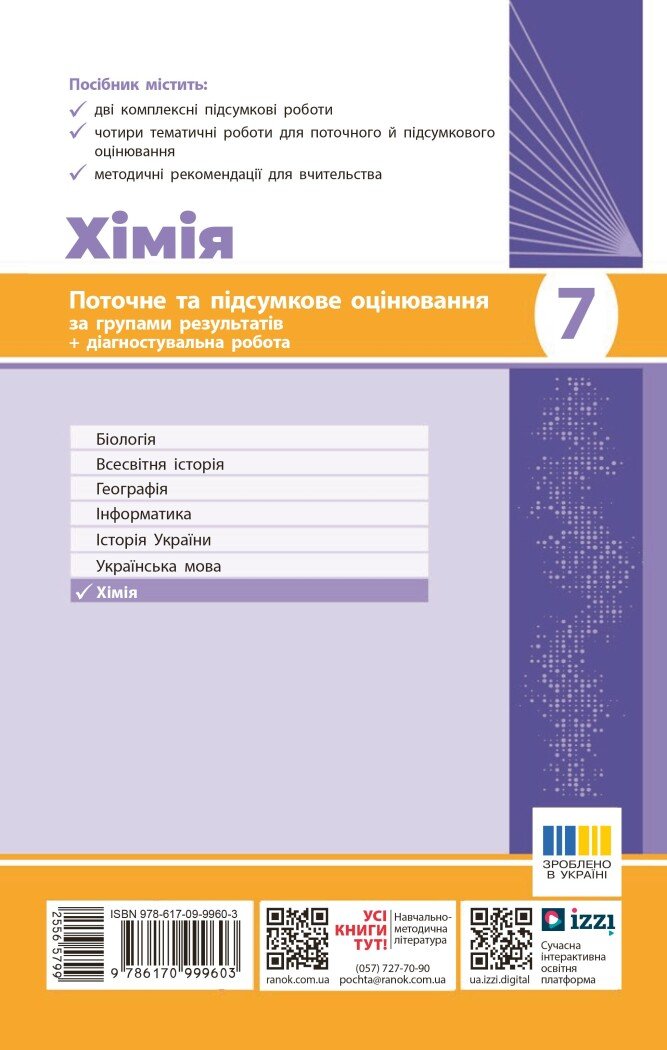 НУШ Хімія. 7 клас. Поточне та підсумкове оцінювання за групами результатів + діагностувальна робота
