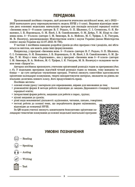 Це — перша частина з двох, в якій наведено матеріали до уроків за темами, що збігаються в обох модельних програмах. Для вчителів англійської мови, які з 2022—2023 навчального року впроваджуватимуть модель НУШ у 5 класі закладів загальної середньої освіти.