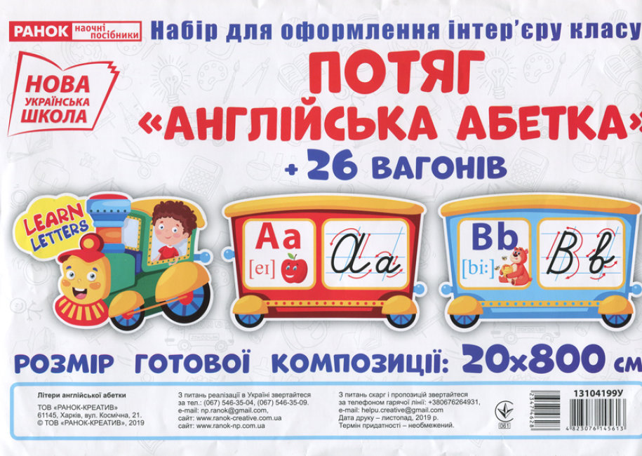 Потяг-помічник прикрасить ваш клас та буде нагадувати дітям про вимову, написання та послідовність англійських літер.