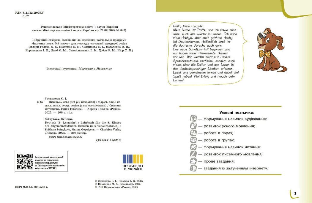 Матеріали підручника є цікавими й сучасними, їх головною метою є формування в учнів готовності здійснювати іншомовне спілкування.