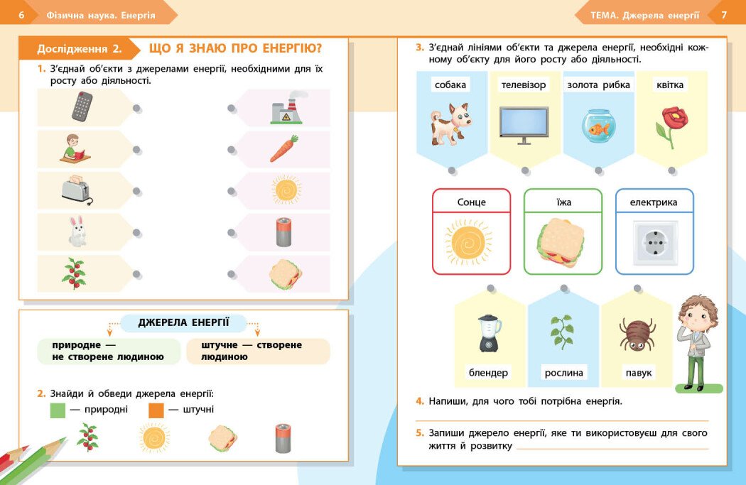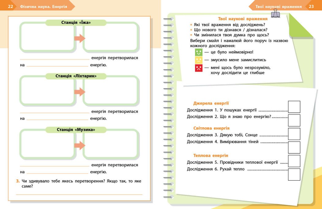 Зошит є складовою навчально-методичного комплекту «STEM-старт». Посібник розроблено з метою формування в учнівства базових дослідницьких навичок та ознайомлення з основами фізики як природничої науки. Учні й учениці проведуть дослідження, пов’язані з різними джерелами енергії, вивчать, як об’єкти використовують енергію Сонця, їжі й електрики.