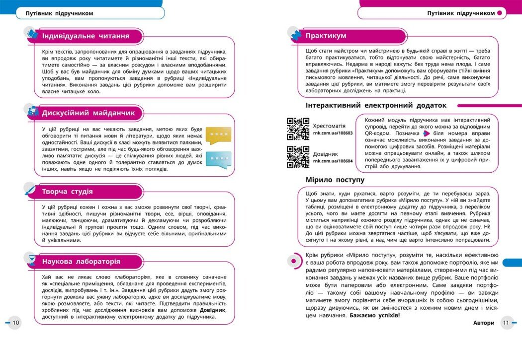 Підручник розроблений відповідно до модельної навчальної програми «Інтегрований мовно-літературний курс (українська мова, українська та зарубіжні літератури). 7-9 класи» для закладів загальної середньої освіти (автори Старагіна І. П., Новосьолова В. І., Терещенко В. М., Романенко Ю. О., Блажко М. Б., Ткач П. Б., Панченков А. О.) Пропонує вивчення мовних тем на основі роботи з художніми текстами з української та зарубіжної літератур.
