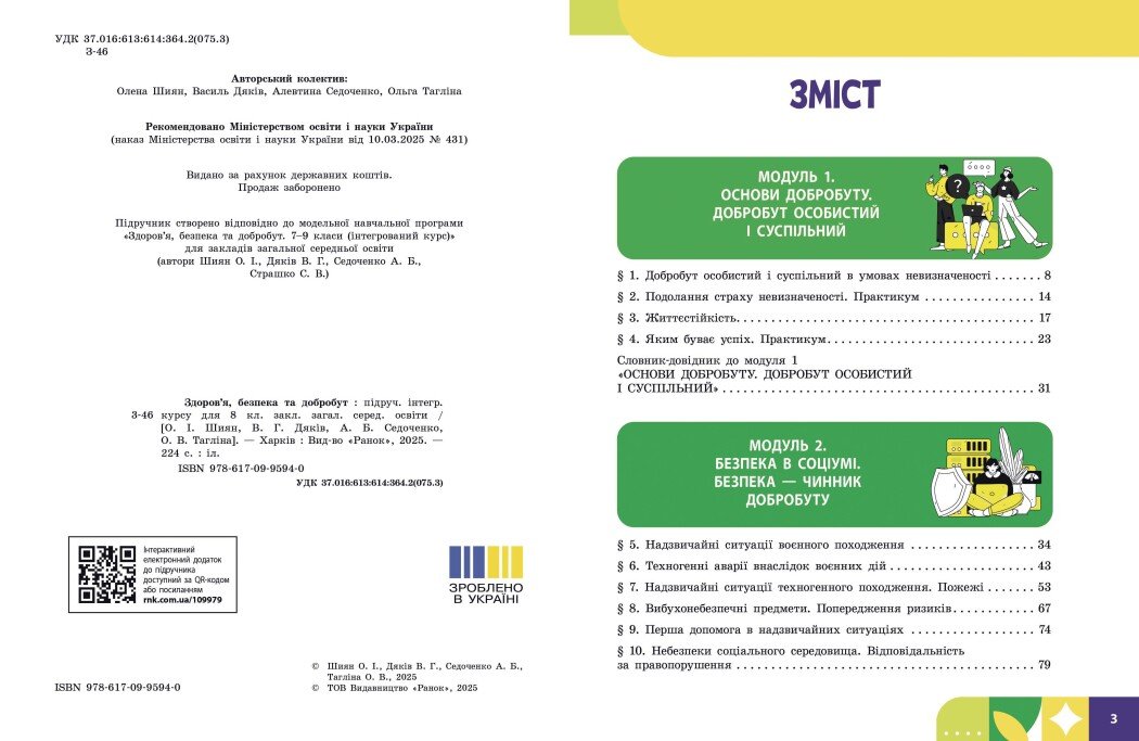 Сучасний підручник із яскравим дизайном, що розвиває всебічні знання учнів та учениць з питань фізичного, психологічного і соціального благополуччя, адаптований до реалій сьогодення. Ідея підручника – сформувати в сучасних українських школярів поняття про фізичне та психологічне здоров’я, навички безпечної поведінки в різних ситуаціях, вміння ефективно навчатися та керувати своїм часом.