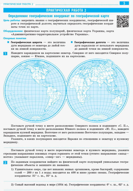 НУШ Географія. 6 клас. Зошит для практичних робіт з інтерактивними завданнями
