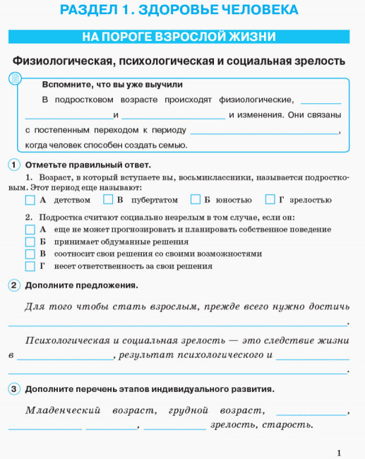 Основы здоровья. 8 класс. Рабочая тетрадь (російською мовою)