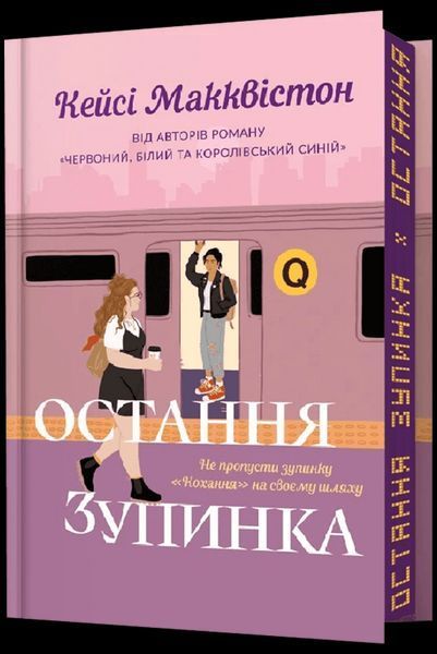 Вона — найважливіша людина в її житті. Хоча вони могли ніколи не зустрітися… Оґаст двадцять три. Вона впевнена, що ані магії, ані кохання, як у кіно, не існує, а єдиний розумний спосіб прожити це життя — залишатися самотньою. Оґаст вірить, що цього не здатні змінити навіть переїзд до дивакуватих сусідів у Нью-Йорку й робота в цілодобовому оладковому ресторанчику. І, звісно ж, немає жодного шансу на те, що щоденна поїздка на метро зі звичної боротьби з нудьгою та перебоями в електропостачанні обернеться чимось більшим.. Та одного дня у вагоні метро Оґаст зустрічає привабливу дівчину. Джейн. Дивовижна, чарівна, загадкова, неможлива Джейн. Грубі риси, розтріпане волосся й м’яка усмішка — саме такою з’являється Джейн у своїй шкірянці, щоб урятувати ранок Оґаст, коли та найбільше цього потребує. Зустрічі з Дівчиною-з-метро поступово стають найкращою частиною дня Оґаст. Та невдовзі вона усвідомлює, що Джейн не просто схожа на панкрокерку 70-х, а й справді перенеслася з тих часів. Тож Оґаст доведеться повернутися до того, що вона намагалася полишити в минулому, щоб допомогти Джейн і зрештою повірити в те, що дива трапляються. «Остання зупинка» Кейсі Макквістон — це магічна, сексуальна й чуттєва історія, де неможливе стає можливим, коли Оґаст робить усе, що в її силах, щоб урятувати дівчину, загублену в часі.
