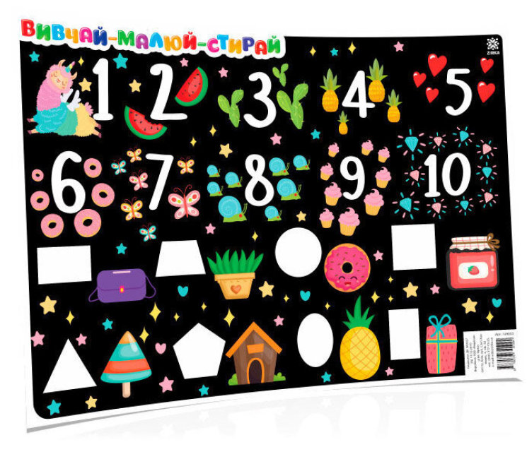 Підкладка навчальна для дівчат «Вивчай-малюй-стирай» – простий спосіб запам’ятати літери та цифри, який задіює образний, словесно-логічний, руховий та емоційний види пам’яті. Малюючи, дитина має можливість через рух запам’ятати обриси літер і цифр, які вивчає, крім того, замальовувати фломастерами можна не один раз, а стирати і робити це знову! Звичка дитини все називати в голос задіє словесно-логічну пам’ять, а приємні емоції та образи, які формуються під час споглядання, зроблять процес навчання приємним! Окрім того, підкладка на столі дає можливість дитині постійно мати перед очима абетку чи цифри.