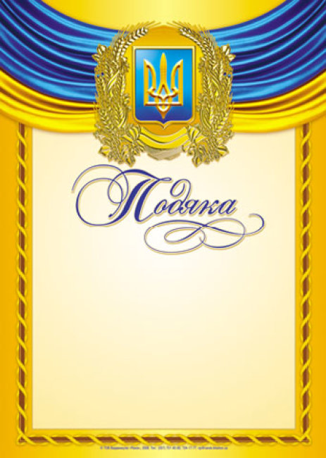 Подяка з жовтою окантовкою та Гербом України, оздобленна золотими пшеничними колосками.