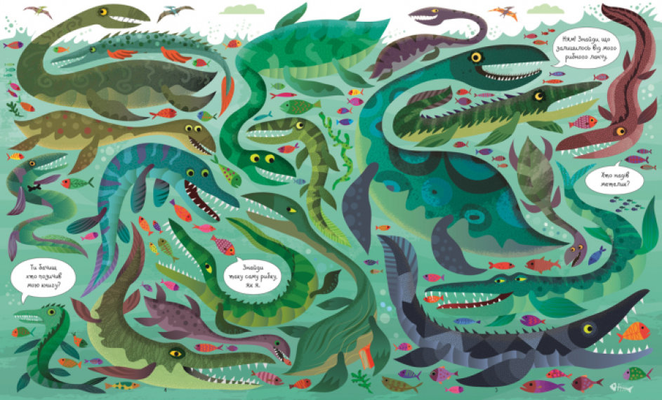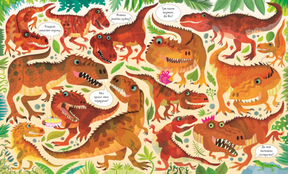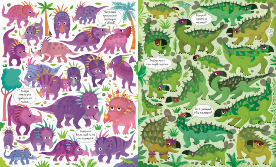 Запрошуємо найуважніших та найдопитливіших у захоплюючу подорож до парку юрського періоду! На кожній сторінці цієї дивовижної книги — безліч динозаврів та інших доісторичних істот, різноманітних предметів і цікавих деталей, які треба знайти, порівняти та порахувати.