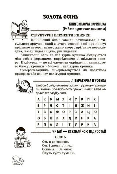 Посібник “Позакласне читання. Робота з дитячою книжкою. 3 клас” розроблено відповідно до Програми Нової української школи (Типові освітні програми під кер. О.Я. Савченко та Р.Б. Шияна). Тексти для читання дібрано з урахуванням різноманітності читацьких уподобань школярів та рекомендацій чинної програми. Рубрика “Книгознавча скринька (Робота з дитячою книжкою)” містить теоретичну інформацію , передбачену Програмою “Робота з дитячою книжкою”, та практичні завдання для її засвоєння. Для перевірки знань учнів до кожної теми додано відповідні завдання, а саме – тести та завдання на відповідність і послідовність. Безкоштовний додаток – “Щоденник читача“- крім запису своїх вражень, дає змогу випробувати себе у різних творчих та соціальних ролях, – автора, читача, мовознавця, критика та, навіть, батьків. Для учнів та вчителів початкових класів.