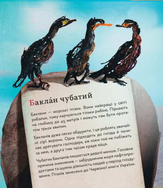 В Україні можна зустріти 436 видів птахів. Багато з них—рідкісні, занесені до Червоної книги України, захищені європейським законодавством з охорони природи. Художниця Ірена Панаріна обрала 33 пташки, які проживають чи залітають в Україну, та створила унікальну пташину абетку. За нею можна не тільки вчити літери, а й познайомитися з пернатими, дізнатися цікаві історії про пташаче життя, що покращить запам’ятовування абетки. Книжка ілюстрована в оригінальній авторській техніці ниткових зображень. Це видання—не лише для маленьких опановувачів грамоти, а й для широкого кола поціновувачів рідної природи.