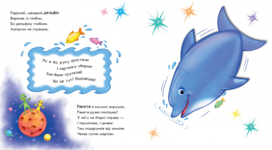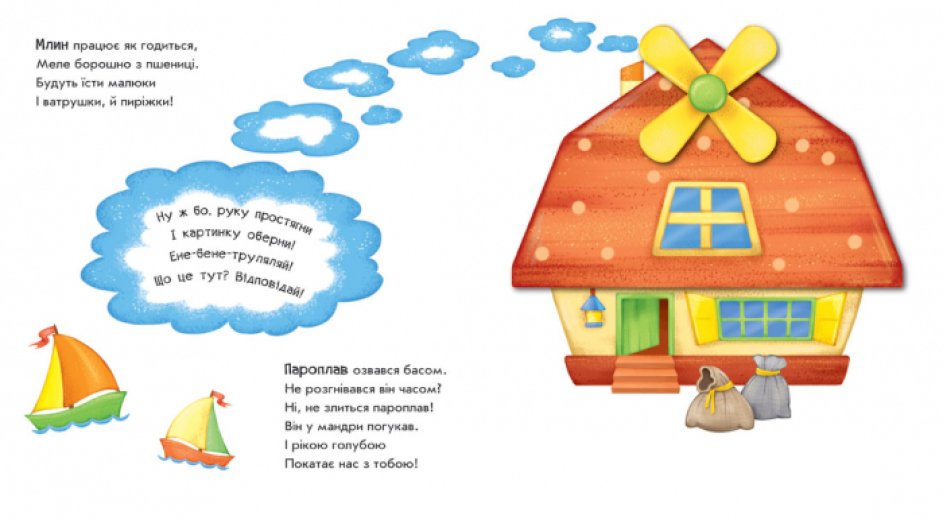 Ці незвичайні книжки-іграшки запрошують малюка пограти у фокусника-чарівника. Варто лише сказати чарівні слова та обернути картинку, і злюка-принцеса перетвориться на красуню-троянду, млин — на пароплав, а кошик з фруктами — на черепашку.