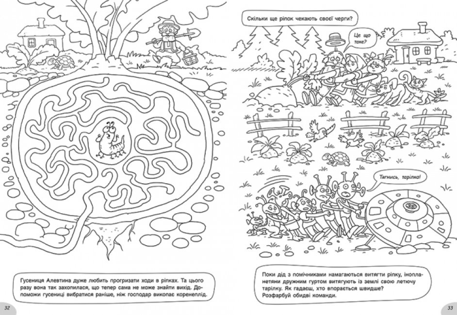 Ця книжка надовго захопить юного дослідника і шукача. Адже кожна сторінка – це цілий світ, повний подій, героїв і пригод. Тут можна виконувати завдання, шукати загублених персонажів, проходити заплутані лабіринти і проявляти фантазію. Наповни цей дивовижний світ фарбами!