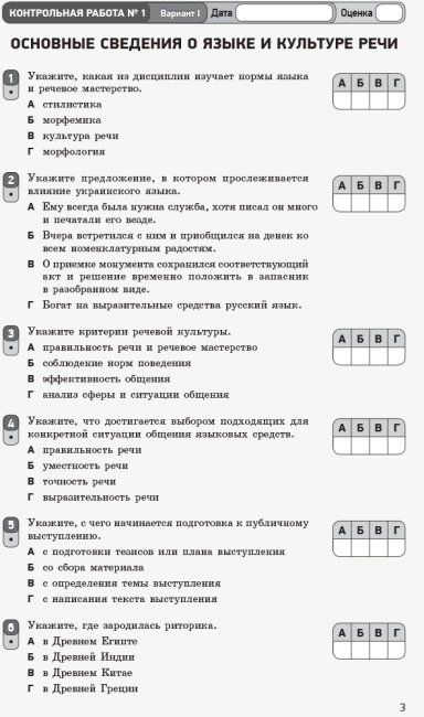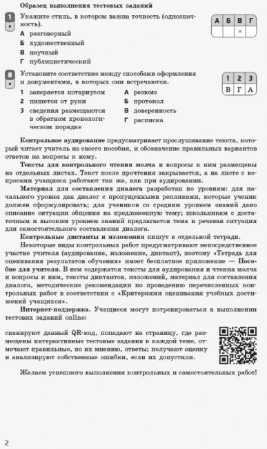 Тетрадь содержит задания для всех видов контроля: тесты для оценивания языковых знаний и умений по темам, вопросы к текстам для аудирования, тексты для чтения молча и вопросы к ним, материал для составления диалога; задания для самостоятельных работ по всем темам.