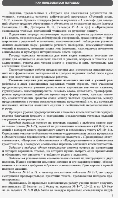 Русский язык (11-й год обучения, уровень стандарта). 11 класс. Тетрадь для оценивания результатов обучения для заведений общего среднего образования (російською мовою)
