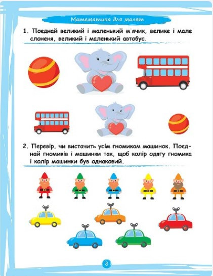 Книжка містить різноманітні вправи для всебічного розвитку дитини віком від двох років. Завдання поділені на п’ять розділів: “Математика для малят”; “Підготовка руки до письма”; “Правила етикету та безпечної поведінки”; “Логіка, увага, пам’ять”; “Я і світ”. Завдяки цікавим та ефективним заняттям малюк зробить перші впевнені кроки у світ навчання із задоволенням. Книжка призначена для спільних занять дорослого та дитини. Кожна вправа укладена відповідно до вікових особливостей малюка. Бажаємо успіхів!/