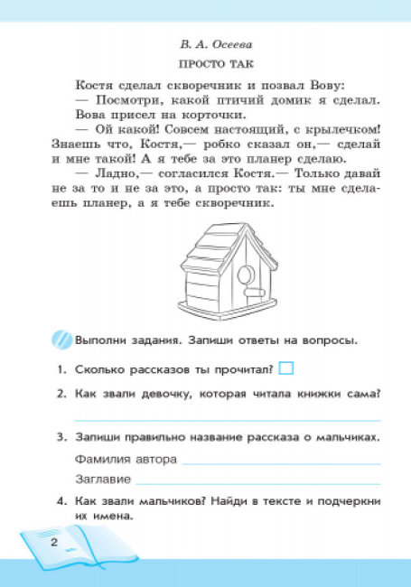 Пособие обеспечивает формирование умения самостоятельно читать детские книги, формирует навык функционального чтения — умения самостоятельно работать по заданиям и вопросам, а также целенаправленно совершенствует культуру чтения, расширяет читательский кругозор.