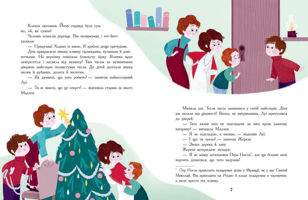 Різдвяна пора завжди сповнена солодких очікувань і сподівань. Адже кожен має заповітну мрію. Комусь кортить отримати улюблену іграшку в подарунок, а хтось понад усе прагне бачити щасливими своїх рідних. Навіть деревце в лісі має потаємне бажання: самотній кленок сподівається, що йому все ж пощастить зустріти свято разом із ялинкою в затишній оселі. І все це неодмінно станеться — варто лише повірити в диво. «Сім історій про Різдво» — збірка добрих і повчальних оповідань, що потішать і малюків, і їхніх батьків.