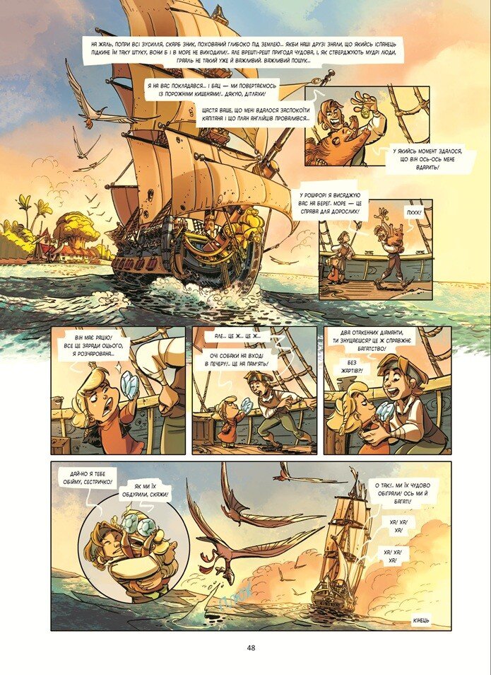 .Арсен і Алікс знову в епіцентрі пригод! Цього разу — на борту французького корабля біля берегів далекої Америки. Та щойно вони дізнаються, що англійці полюють на стародавні скарби конкістадорів, усе змінюється. Звісно, брат із сестрою не можуть стояти осторонь! Їхня мета — зірвати підступний план ворогів. Але пригоди мають свою ціну, і незабаром діти опиняються в самому вирі небезпек, з якого вибратися буде не так уже й просто…