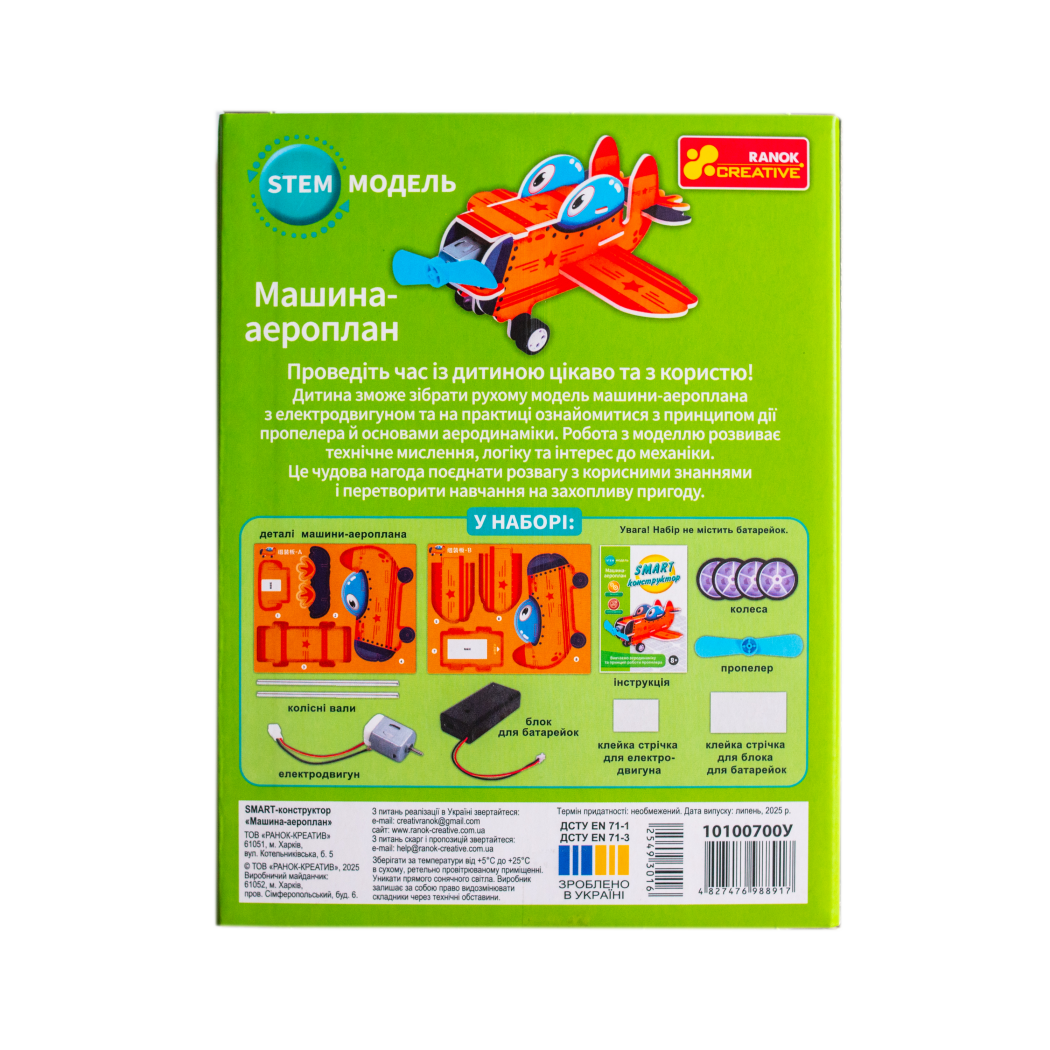 Smart-конструктор – універсальна іграшка, цікава для дітей будь-якого віку та статі, яка може інтегруватися до шкільної STEM-програми. З’єднуючи невеликі деталі, дитина створює новий об’єкт. Набір дозволяє легко зібрати рухому модель аероплана з електродвигуном і на практиці побачити, як працює пропелер та виникає тяга. У комплекті всі деталі та покрокова інструкція, написана спеціально для дітей. Поставте модель на рівну поверхню, увімкніть двигун і спостерігайте за рухом пропелера. Цікаві факти про винахід гвинта Леонардо да Вінчі, перший політ братів Райт та використання гвинтів у літаках, дронах і кораблях додають додаткову інформацію. Набір стане чудовим подарунком для тих, хто любить відкривати нове, цікавиться наукою та обожнює сучасні іграшки з вау-ефектом.